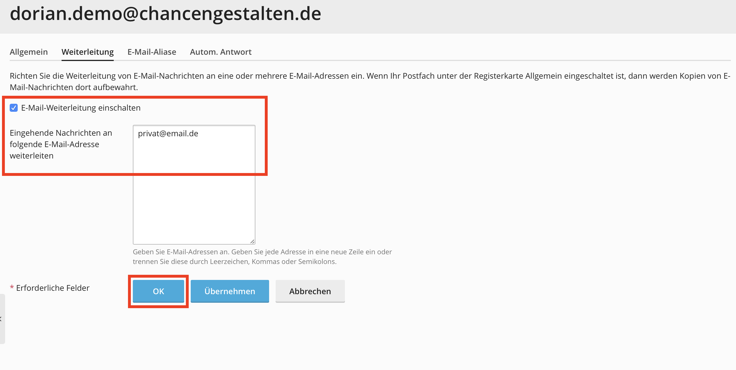 Jedes Mitglied bei CHANGE e.V. erhält in der Regel eine Projekt-eMail-Adresse. Wenn du diese nicht aktiv benutzen möchtest, kannst du dir auch eine Weiterleitung an deine private eMail-Adresse einrichten.
